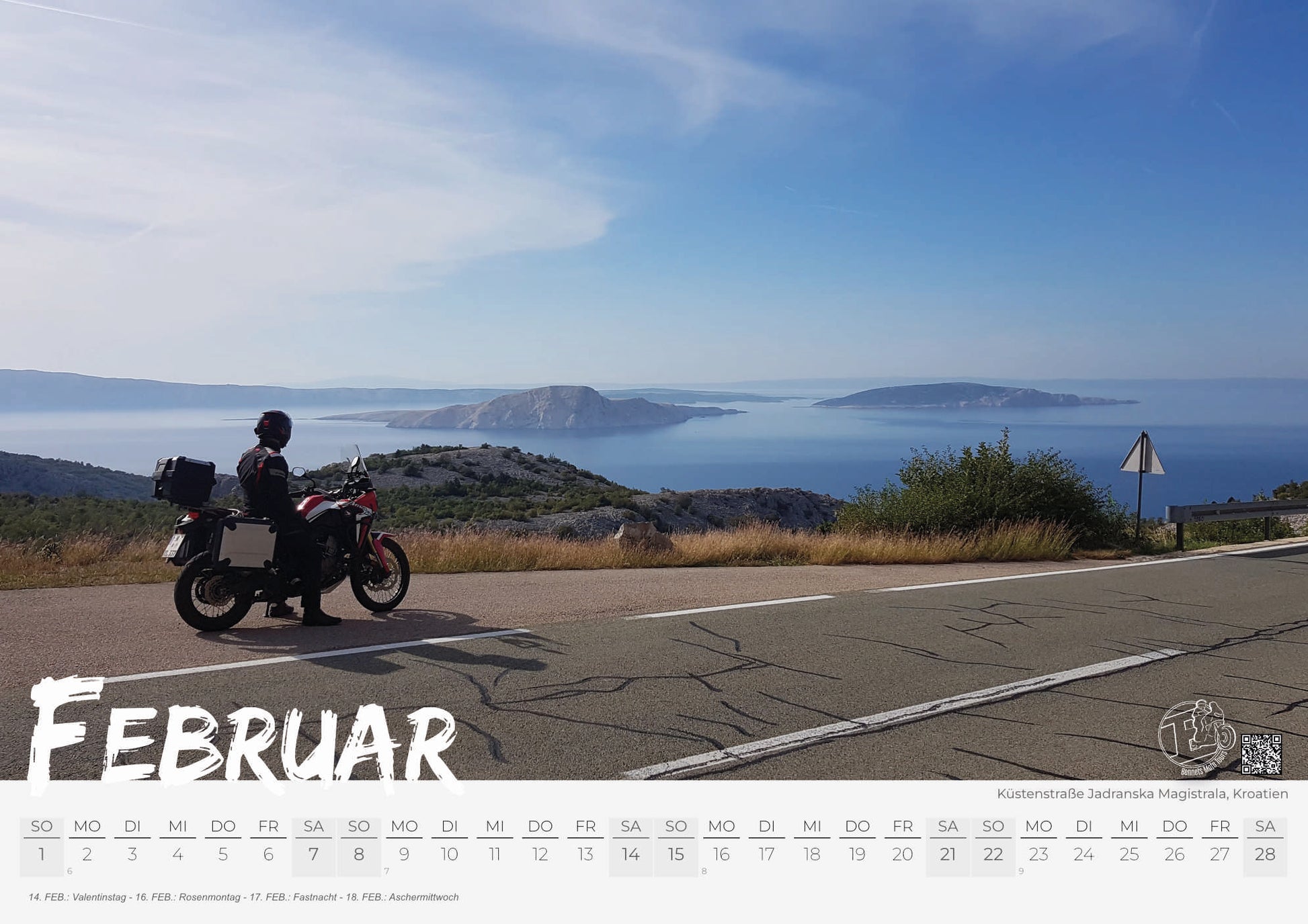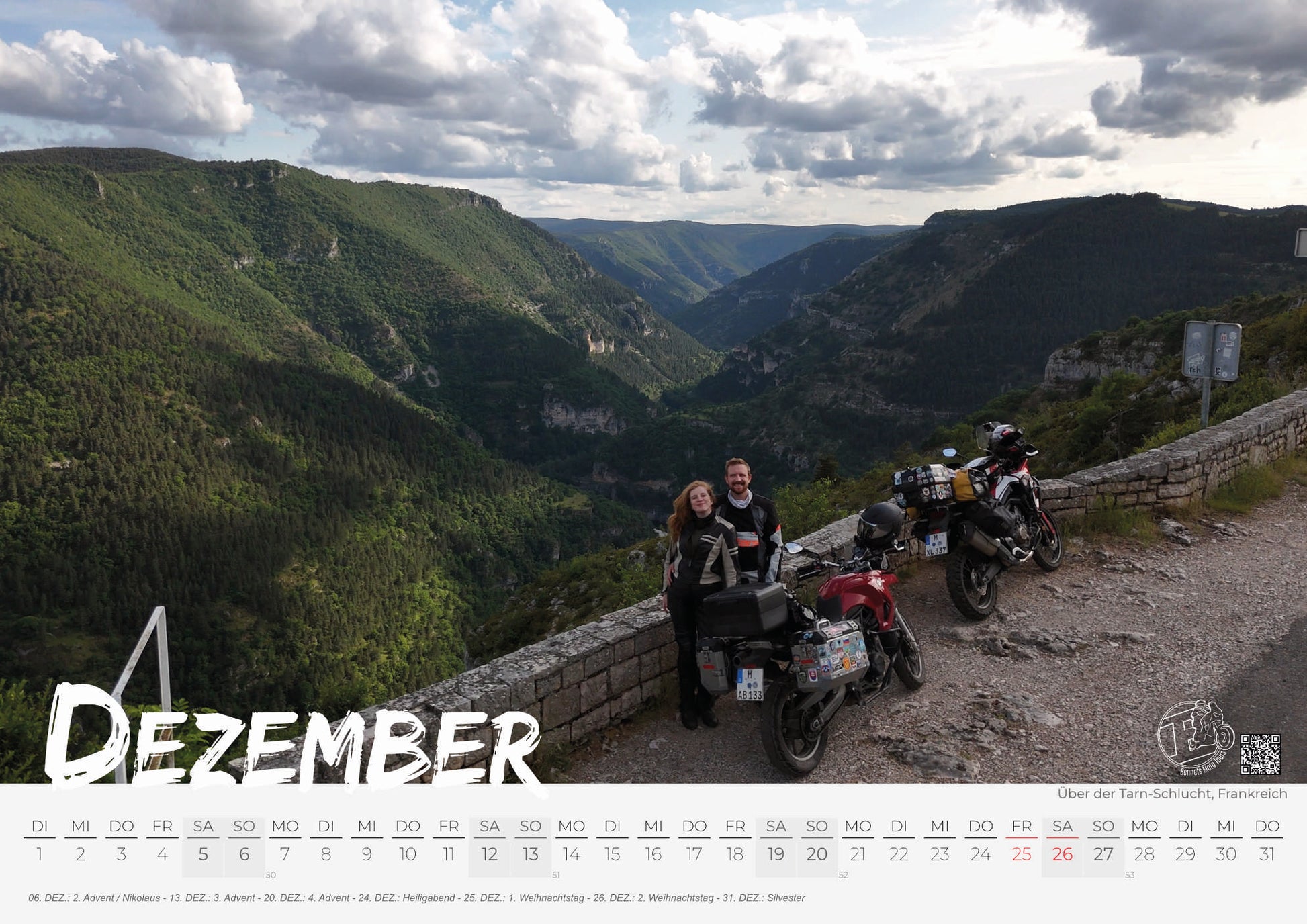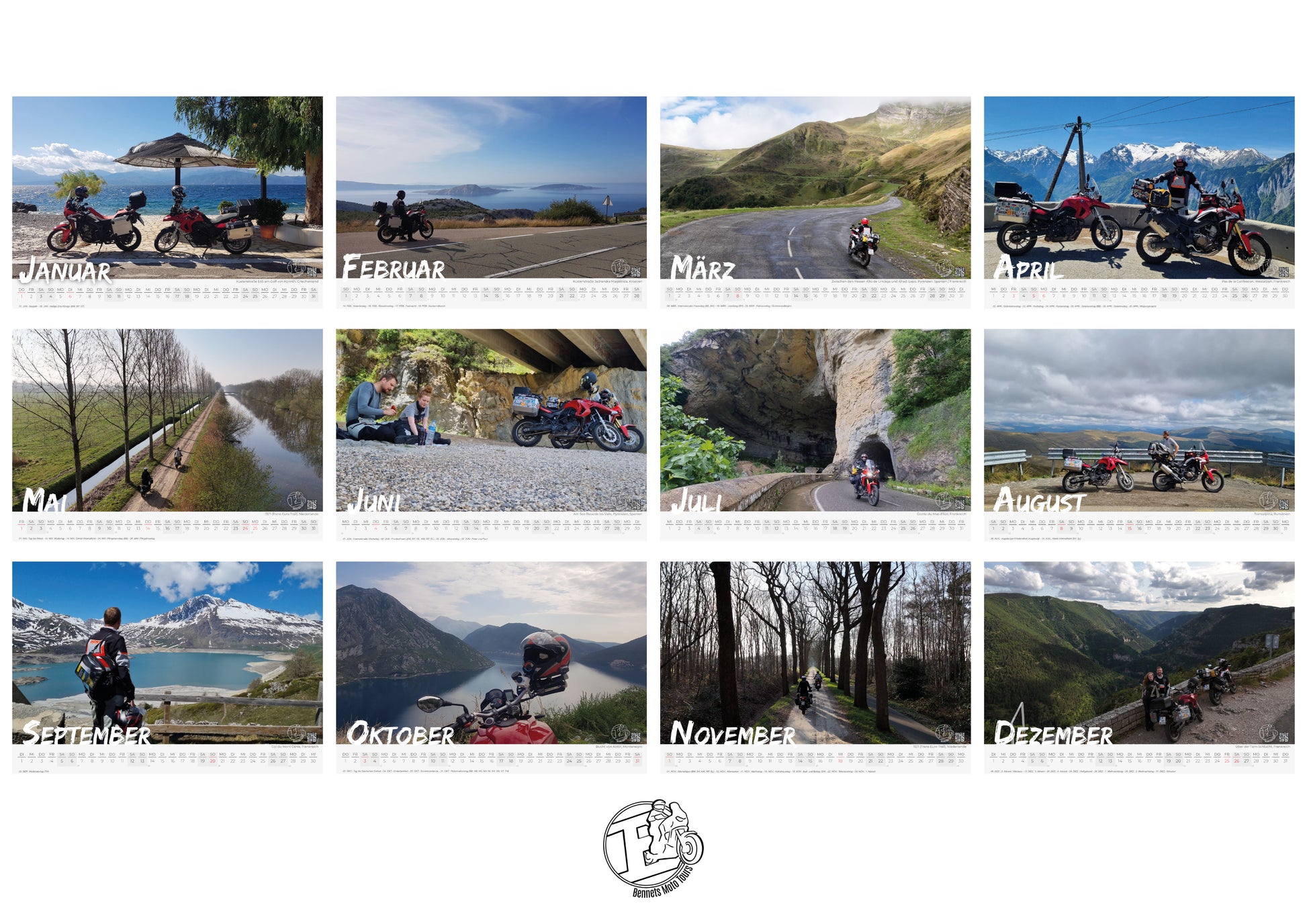 Lass dich inspirieren! Dieser Kalender ist eine ständige Erinnerung daran, dass die Welt da draußen wartet und das nächste Abenteuer nur eine Motorradfahrt entfernt ist.